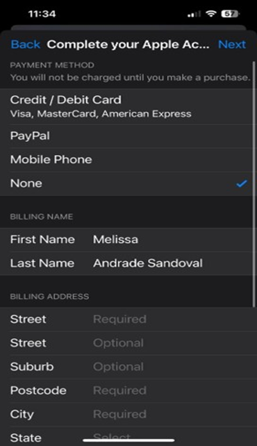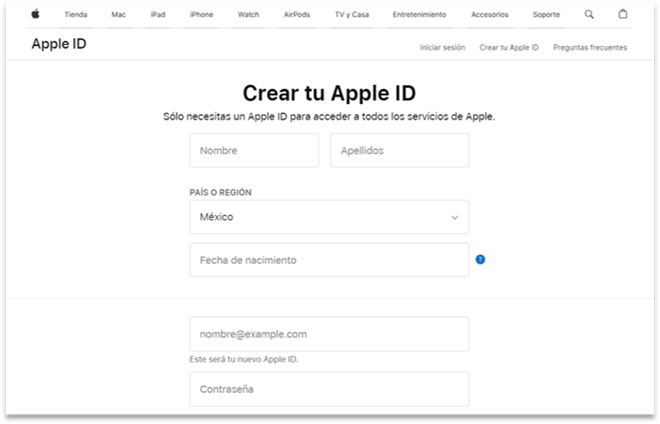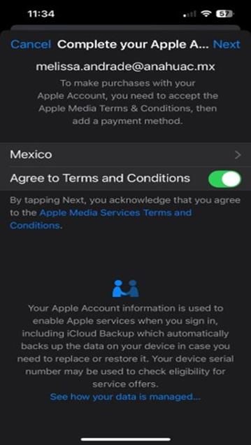 3. Agrega la información para crear un nuevo ID mexicano (ingresa el correo de tu institución o cualquier correo distinto a al mail utilizado en el Apple ID antiguo).