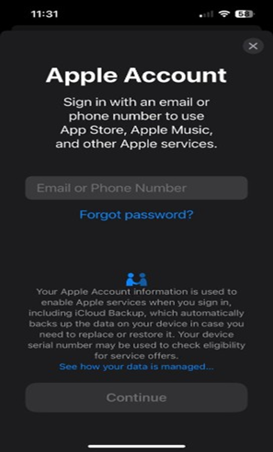 8. Después de haber cerrado tu anterior sesión de Apple ID, ingresa tu nuevo correo registrado.