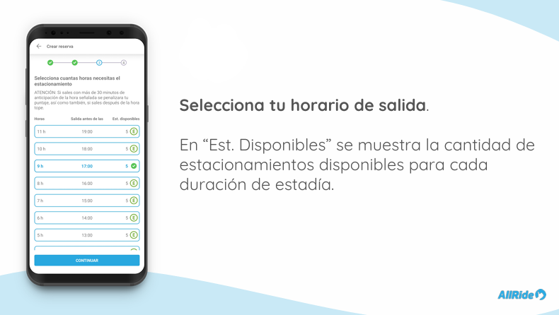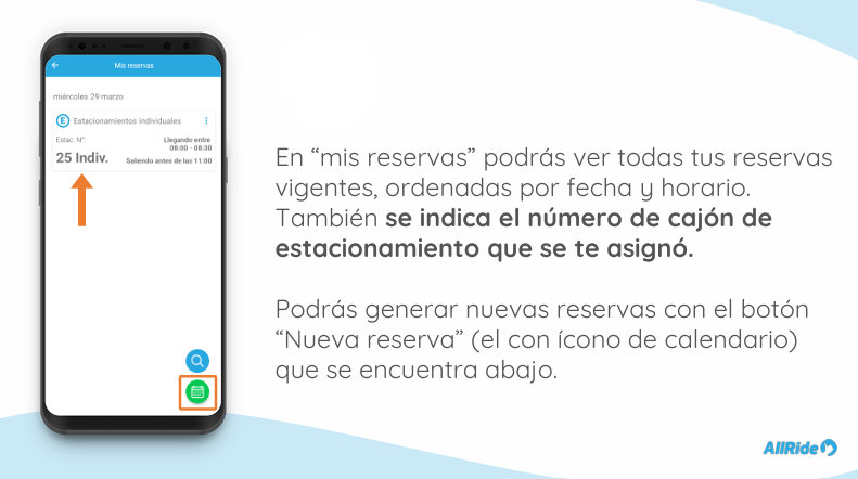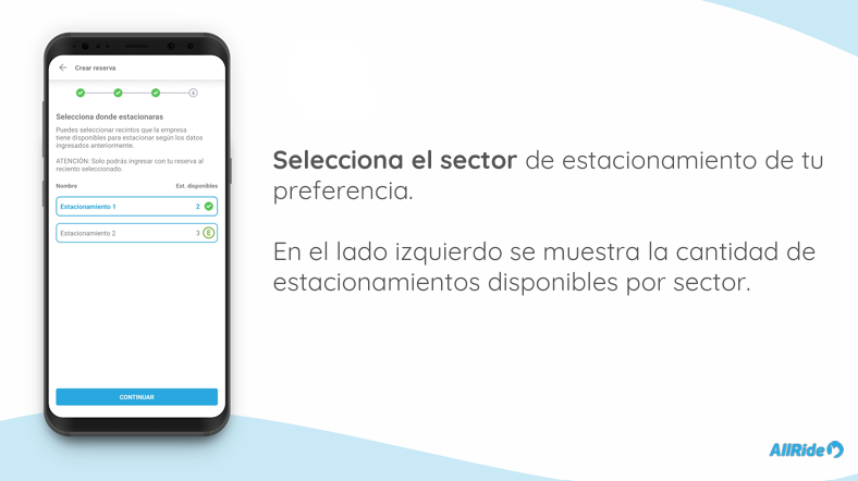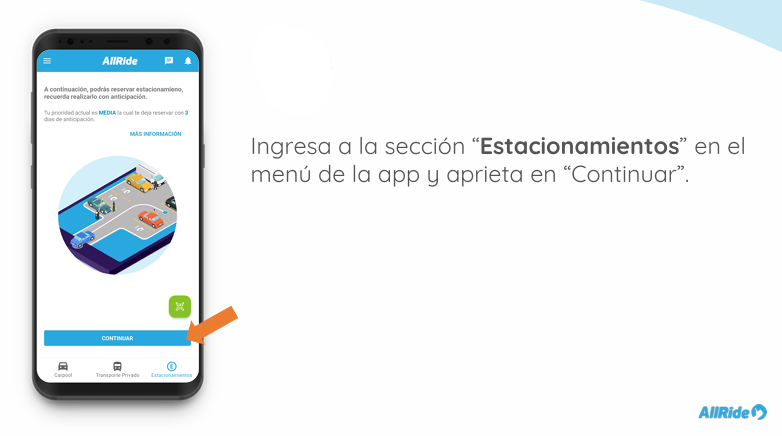4. Reserva tu estacionamiento ingresando a la sección de estacionamientos y reservando según la fecha, horario de entrada, horario de salida y edificio en que vas a estacionar.